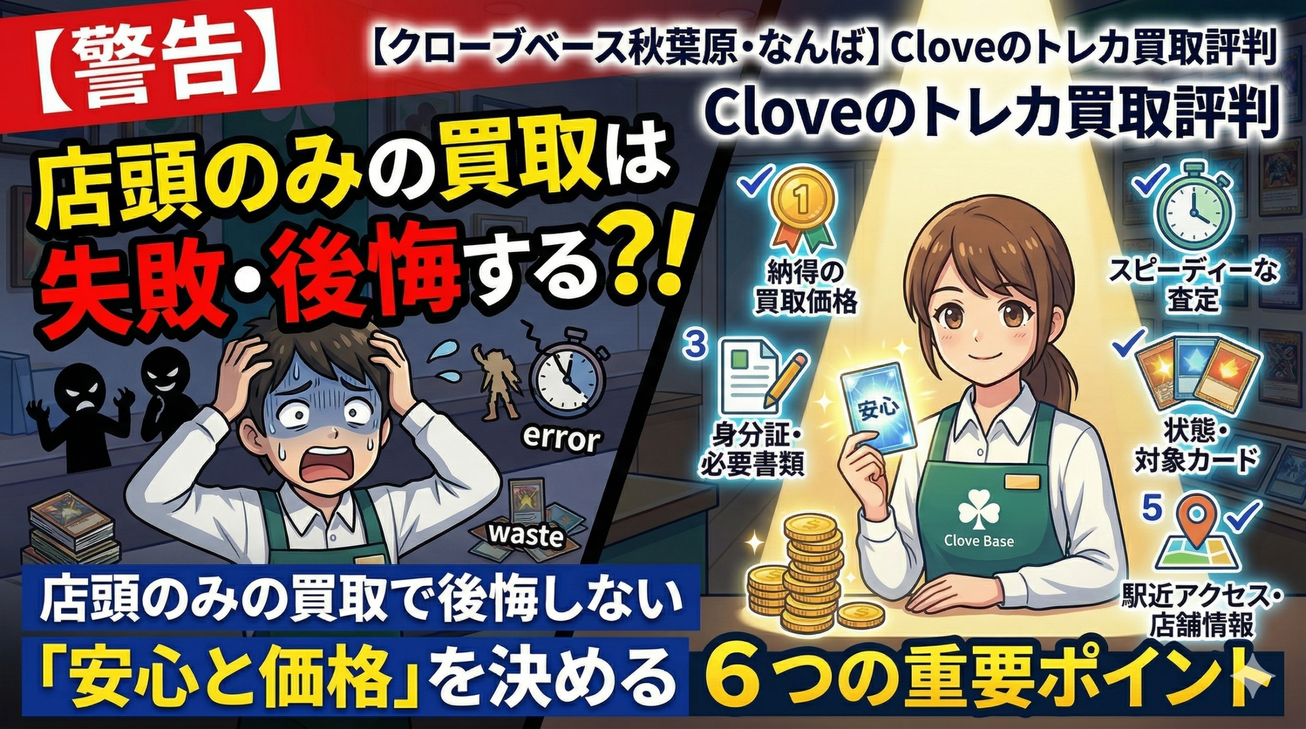 【クローブベース秋葉原・なんば】Cloveのトレカ買取評判| 店頭のみの買取で後悔しない6つの重要ポイント