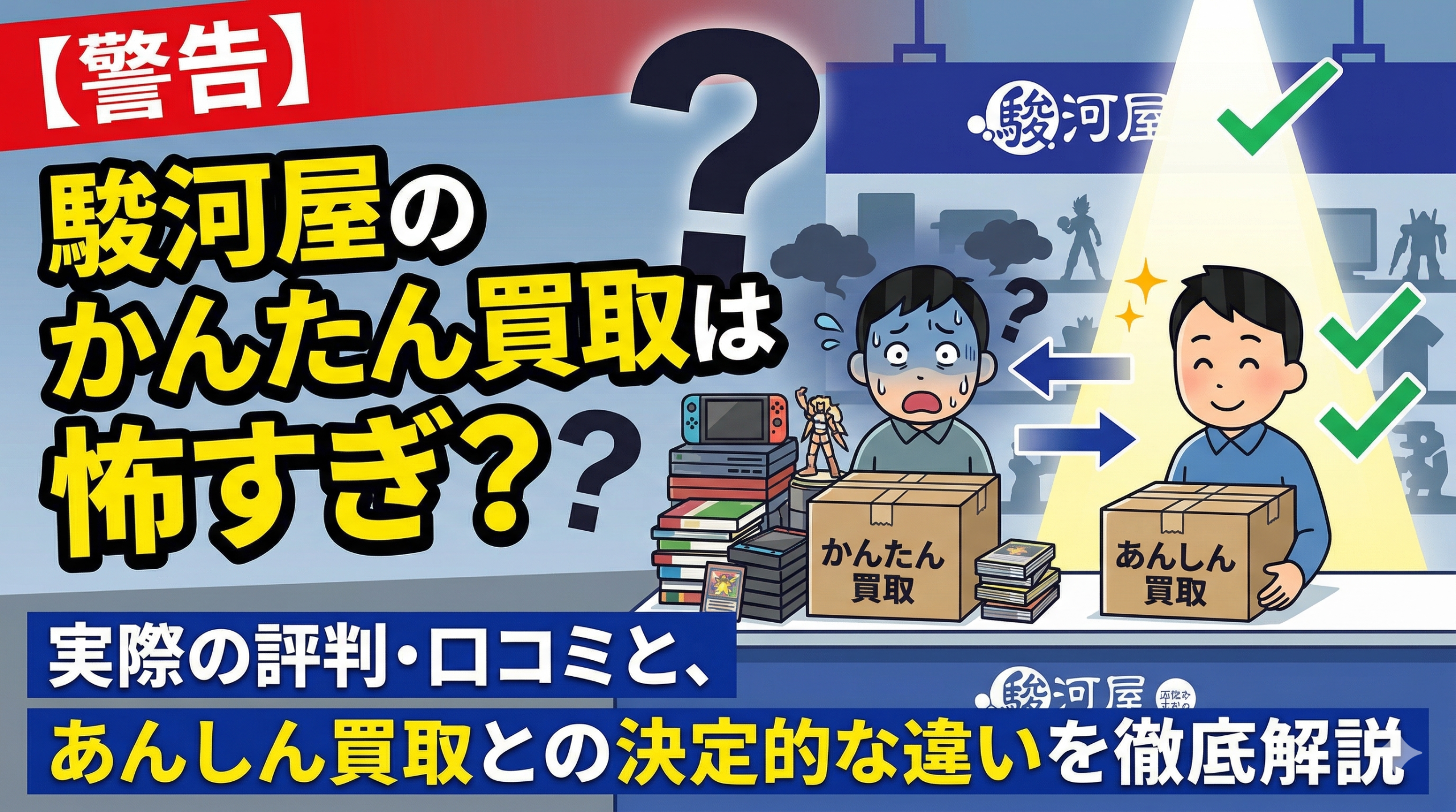 【警告】駿河屋のかんたん買取は怖すぎ?実際の評判・口コミと、あんしん買取との決定的な違いを徹底解説